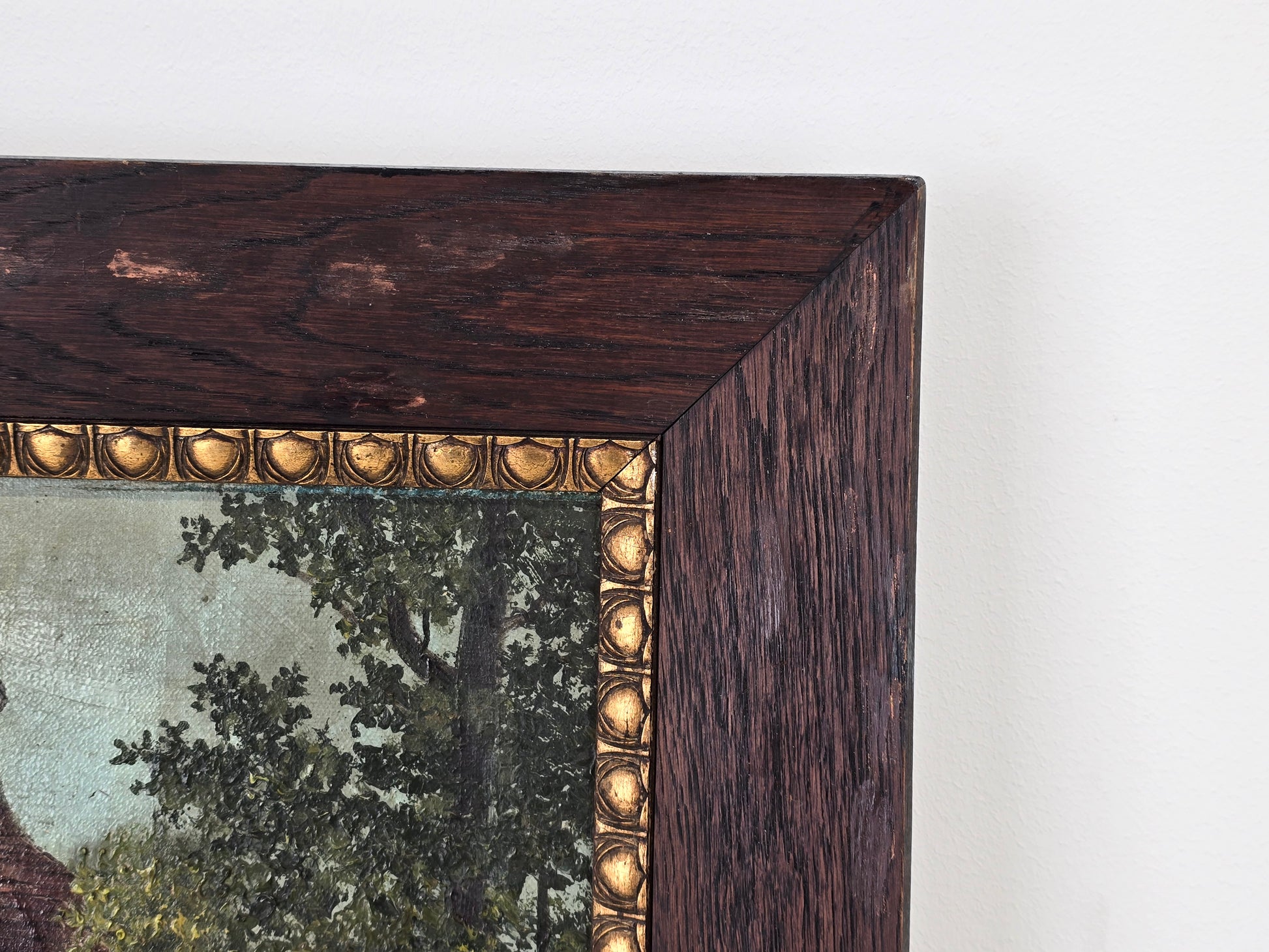 Zustand : Gebrauchsspuren und Patina vorhanden, siehe Fotos. Das Gemälde weist eine schöne Oberflächenstruktur auf; der Rahmen hat altersbedingte Abnutzungen am Holz.