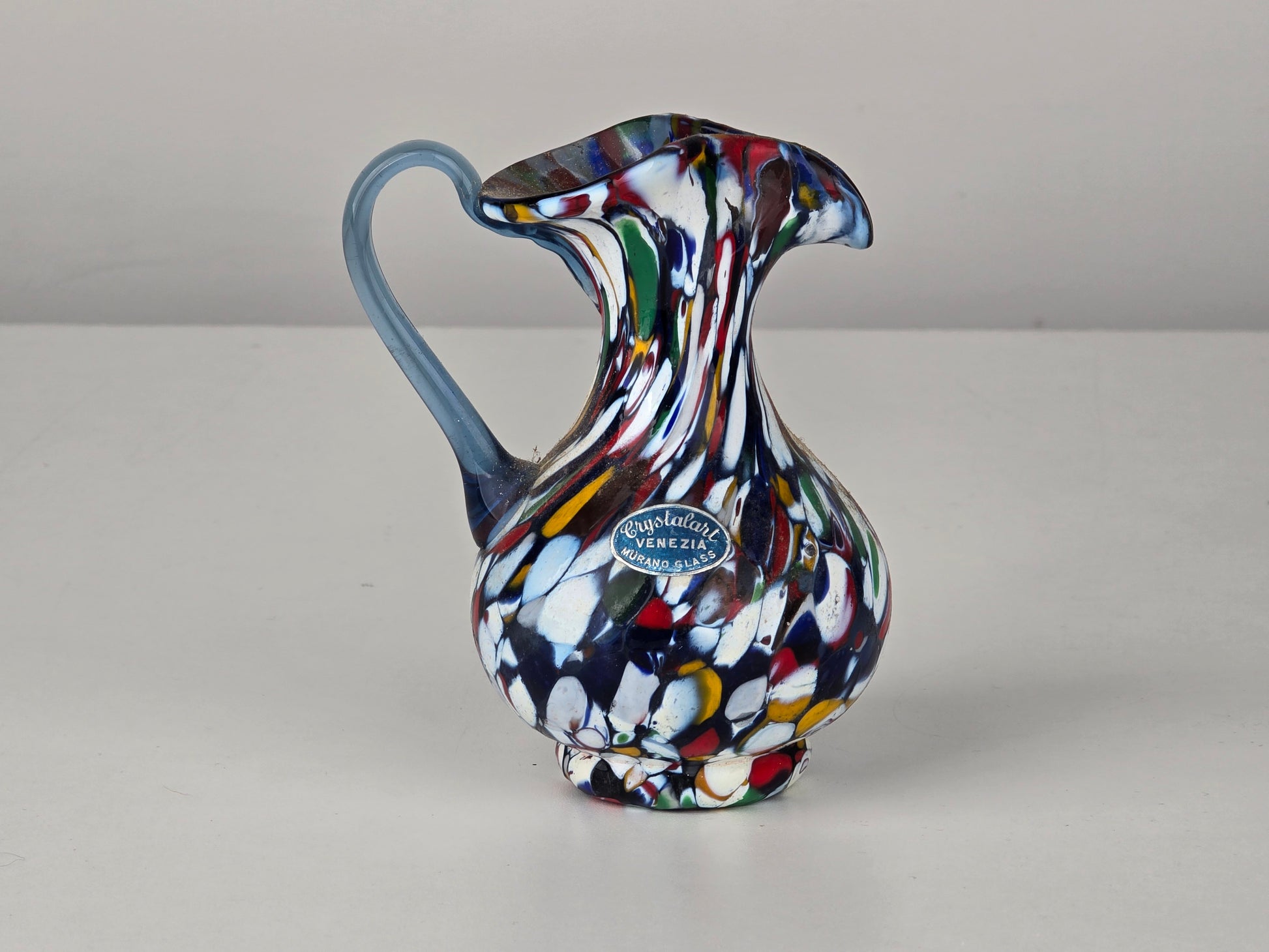 Beschreibung : Ein echtes Stück italienischer Glaskunst. Dieser kleine Krug von Crystalart Venezia besticht durch seine lebhafte Farbgebung und die typische Murano-Handwerkskunst. Ob als Vase oder Sammlerstück – ein zeitloser Klassiker mit originalem Etikett.
